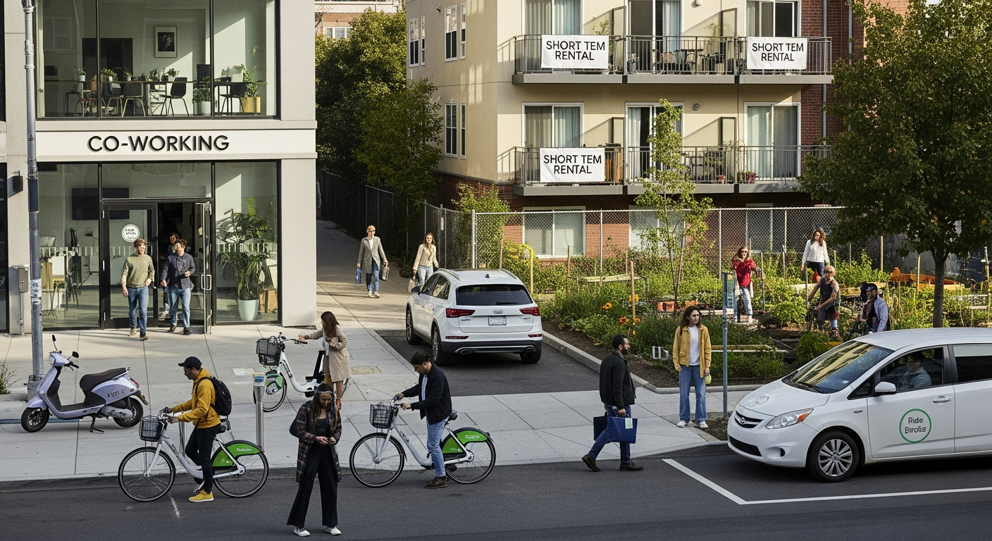 Shared economy models are particularly visible within the framework of modern urbanism. In densely populated areas, the limitations of physical space make personal ownership of large assets like cars increasingly impractical and expensive. Enhanced social interaction through shared mobility and co-working spaces allows for a more fluid use of city infrastructure, optimizing how people navigate and inhabit urban environments while reducing the strain on local resources.